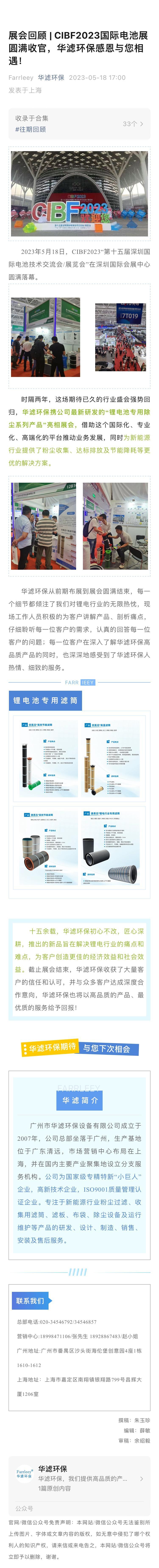 展会回顾 | CIBF2023国际电池展圆满收官,华滤环保感恩与您相遇!