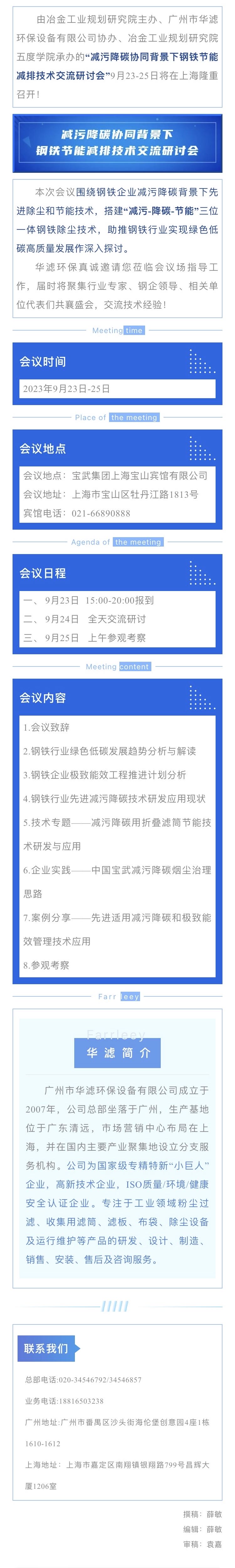 会议邀请 |华滤环保邀您共赴“减污降碳协同背景下钢铁节能减排技术交流研讨会”