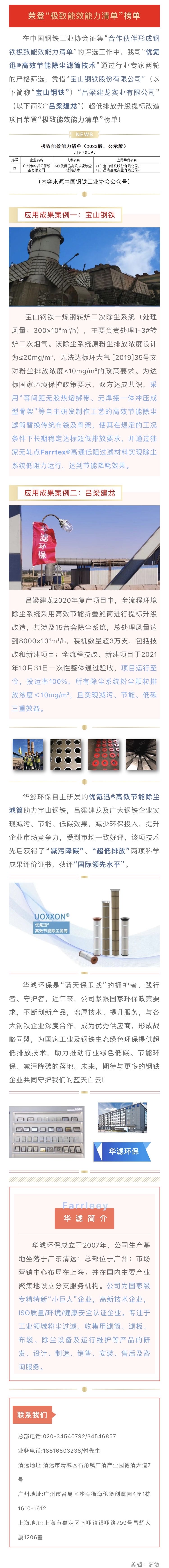 喜讯!华滤环保荣登“极致能效能力清单”榜单